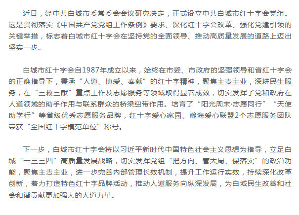 白城市红十字会设立党组——强化党建引领 筑牢发展根基