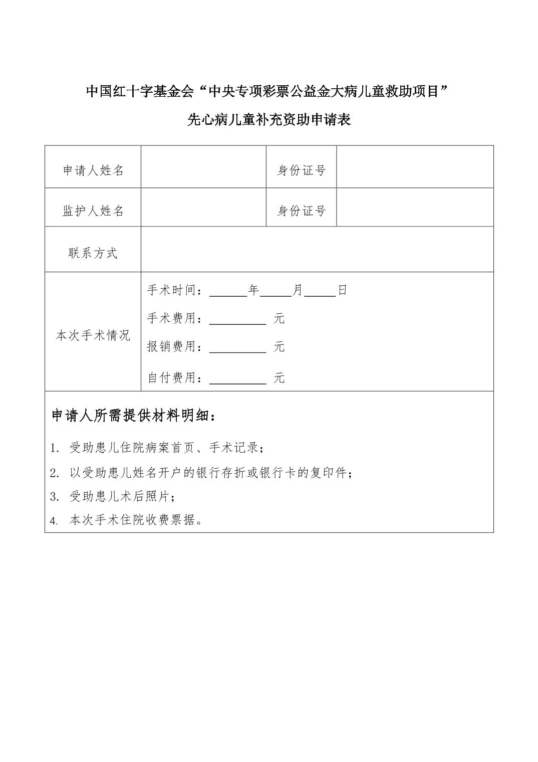 4、+《中国红十字基金会“中央专项彩票公益金大病儿童救助项目”先心病儿童补充资助申请表》.pdf