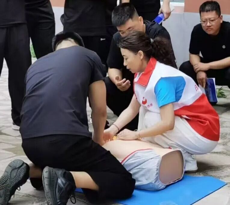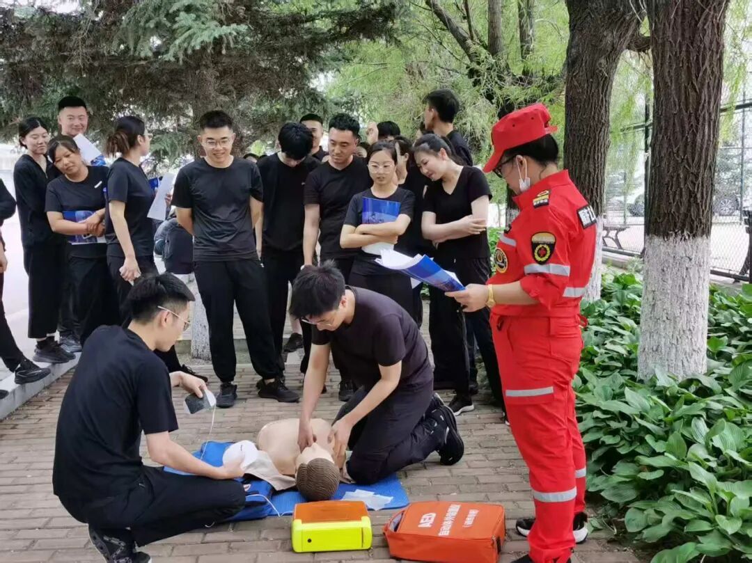 红十字会的专业讲师系统讲解了心肺复苏操作流程、AED的使用、气道异物梗阻处理等内容,并通过真实案例强调"黄金4分钟"的重要性,帮助学员建立急救知识框架。在理论讲解之后的实操环节,学员分为六组进行练习,利用人体模型操作心肺复苏,学习AED使用技巧,讲师们在一旁耐心指导纠正不规范的操作,确保手法到位流程规范,帮助学员们更好的掌握急救技能。